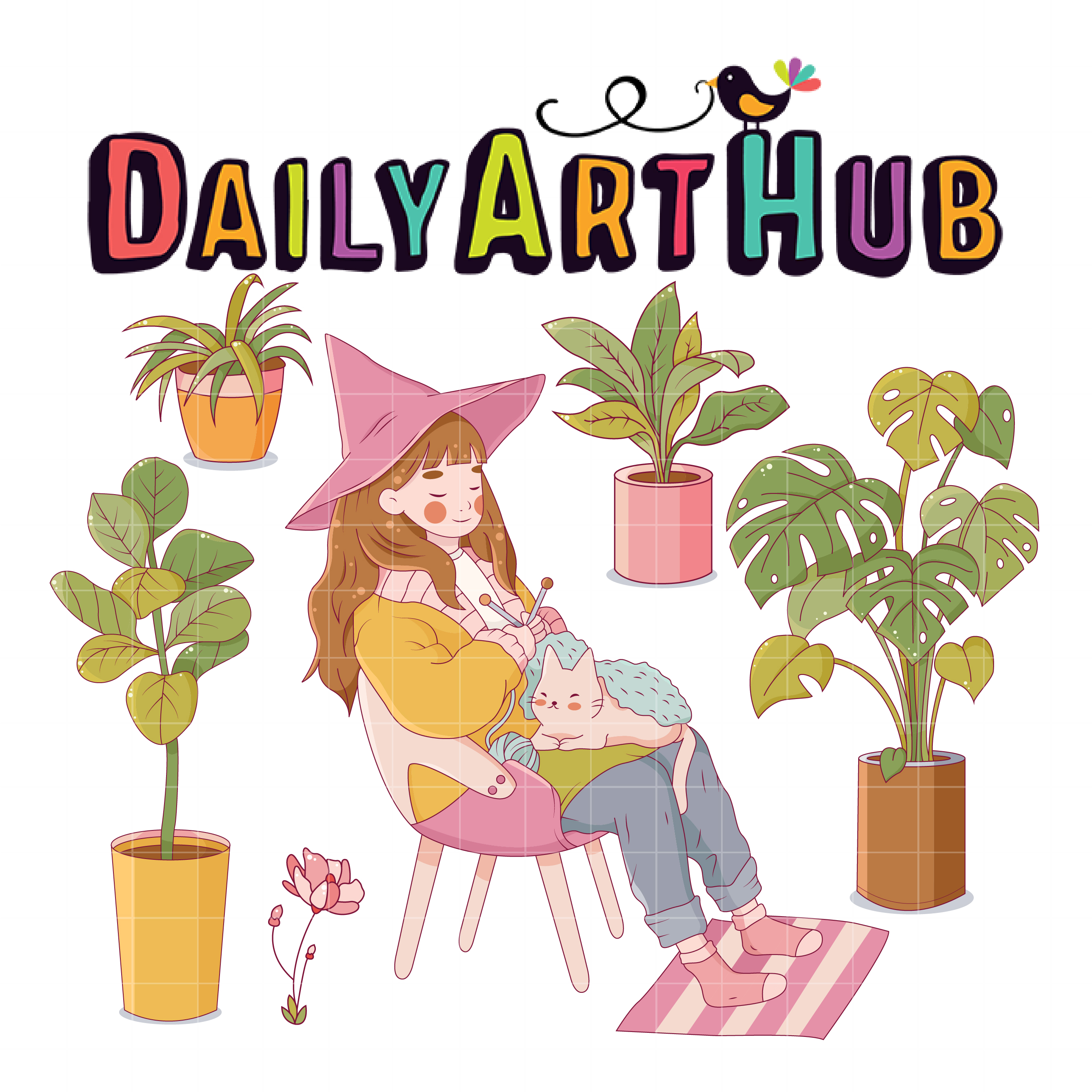 Cozy Anime Girl Stitching Clip Art Set – Daily Art Hub – Free Clip Art